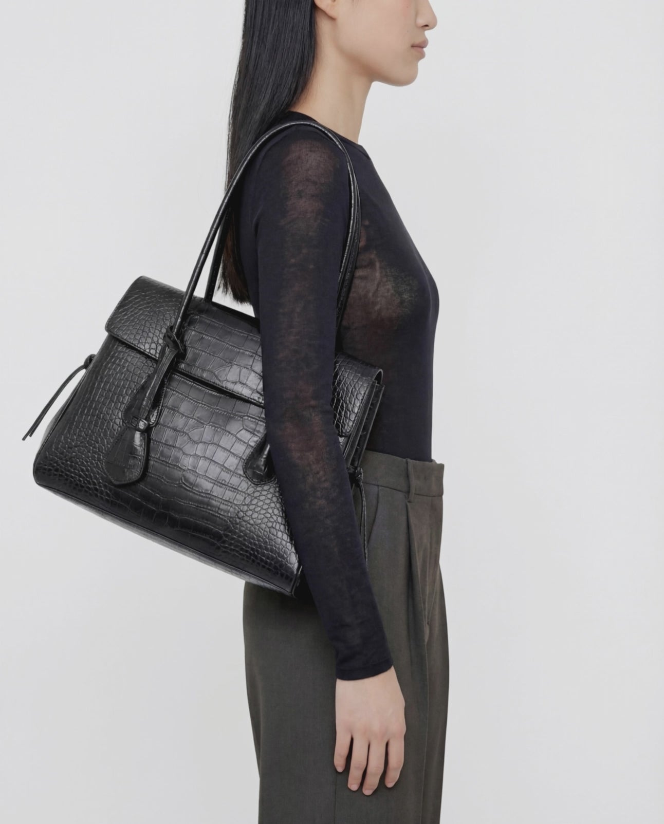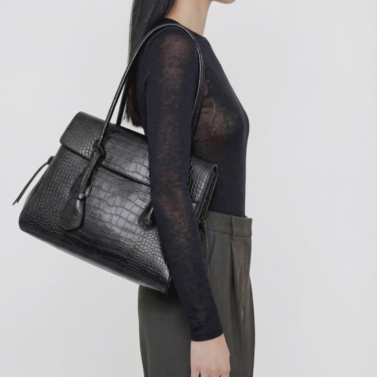 Lydia Tote Bag Leather Black Croco